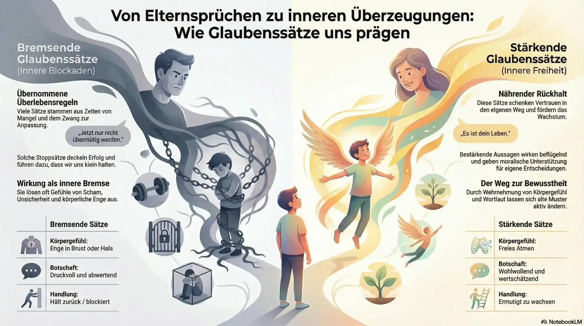 Viele dieser übernommenen Regeln werden zu Glaubenssätzen aus der Kindheit – und wirken weit über die Kindheit hinaus.